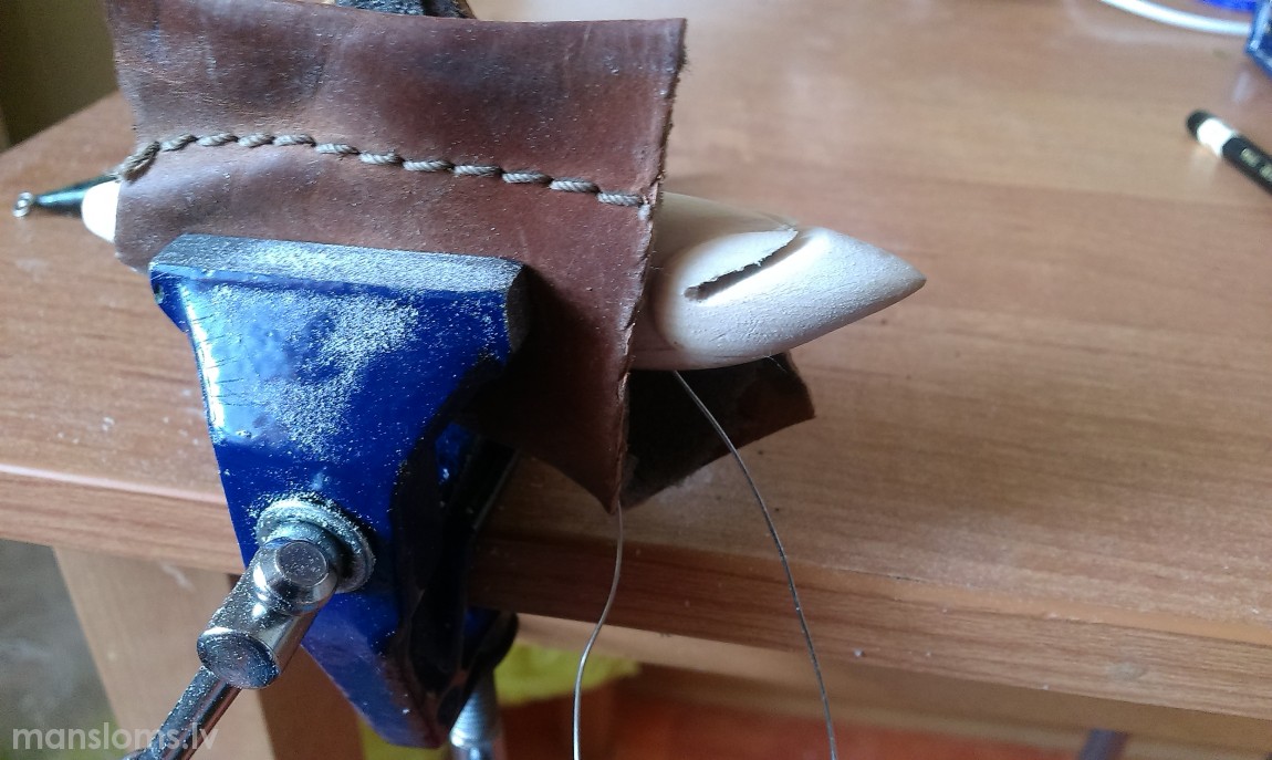 iezāģējam vietu, kur ievietosim plastmasas vai organiskā stikla mēlīti. Šo vajag ļoti precīzi izdarīt